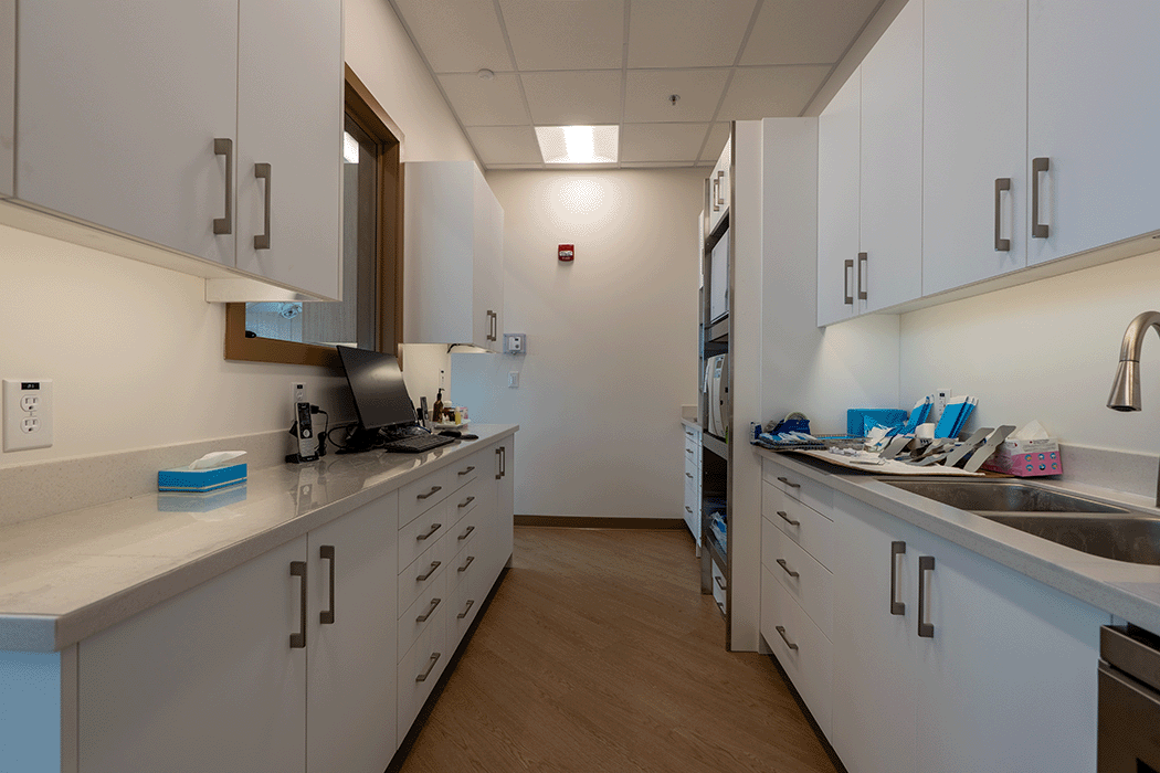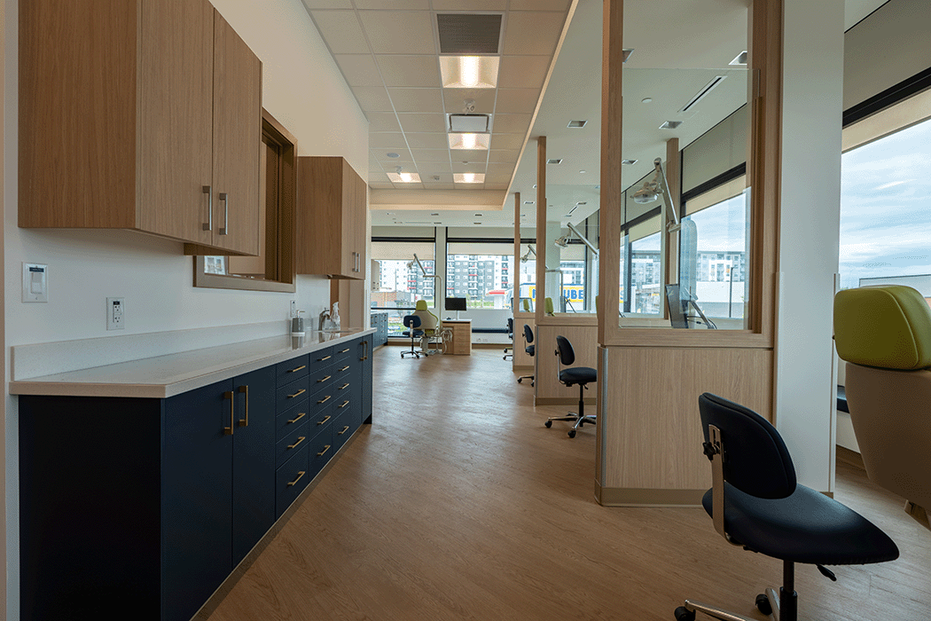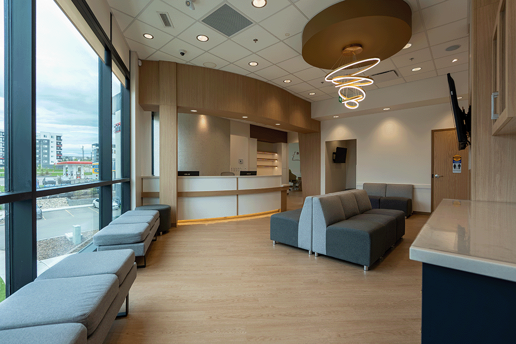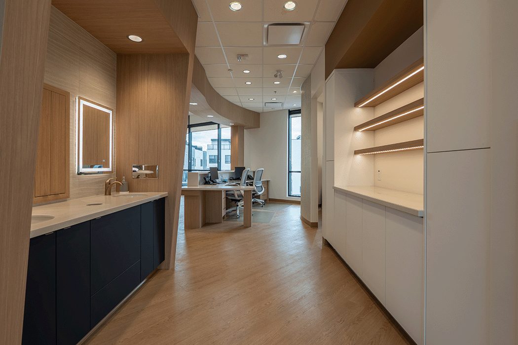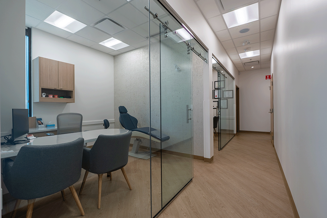 Interior renovations for a new orthodontics clinic, with all new finishes, millwork, solid surface countertops, Z32 testing, electrical, medical gas, mechanical, HVAC, plumbing.