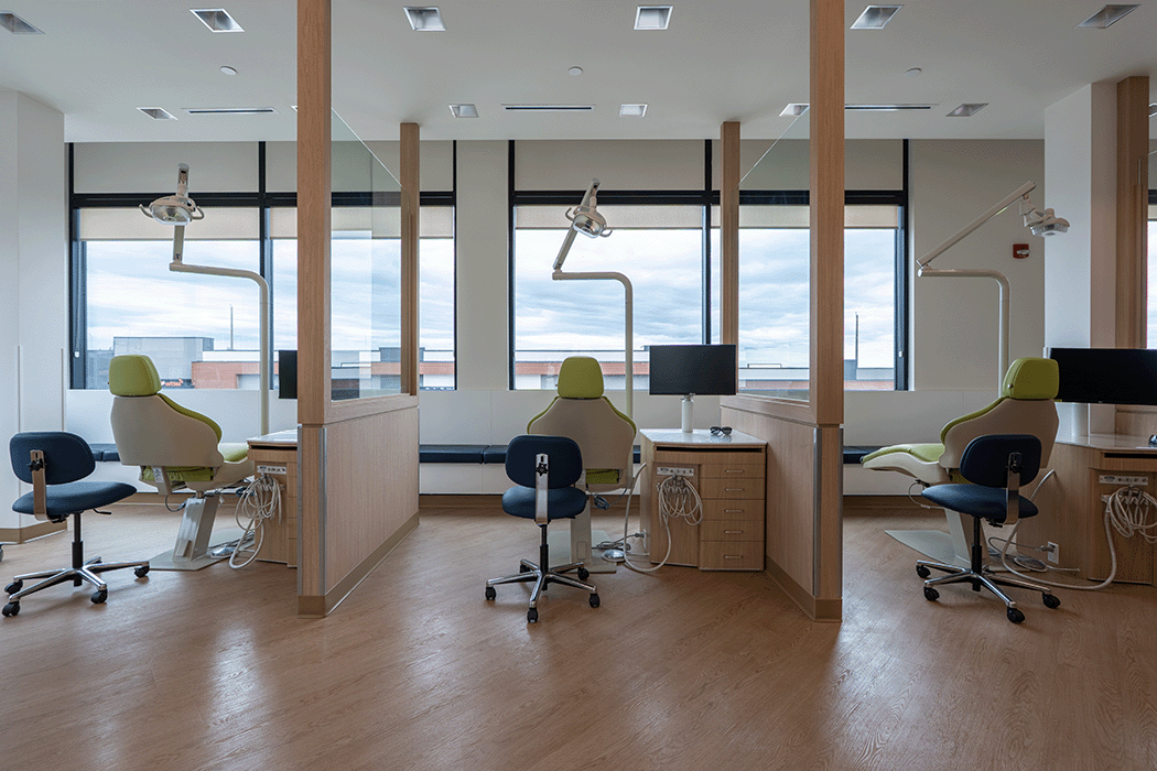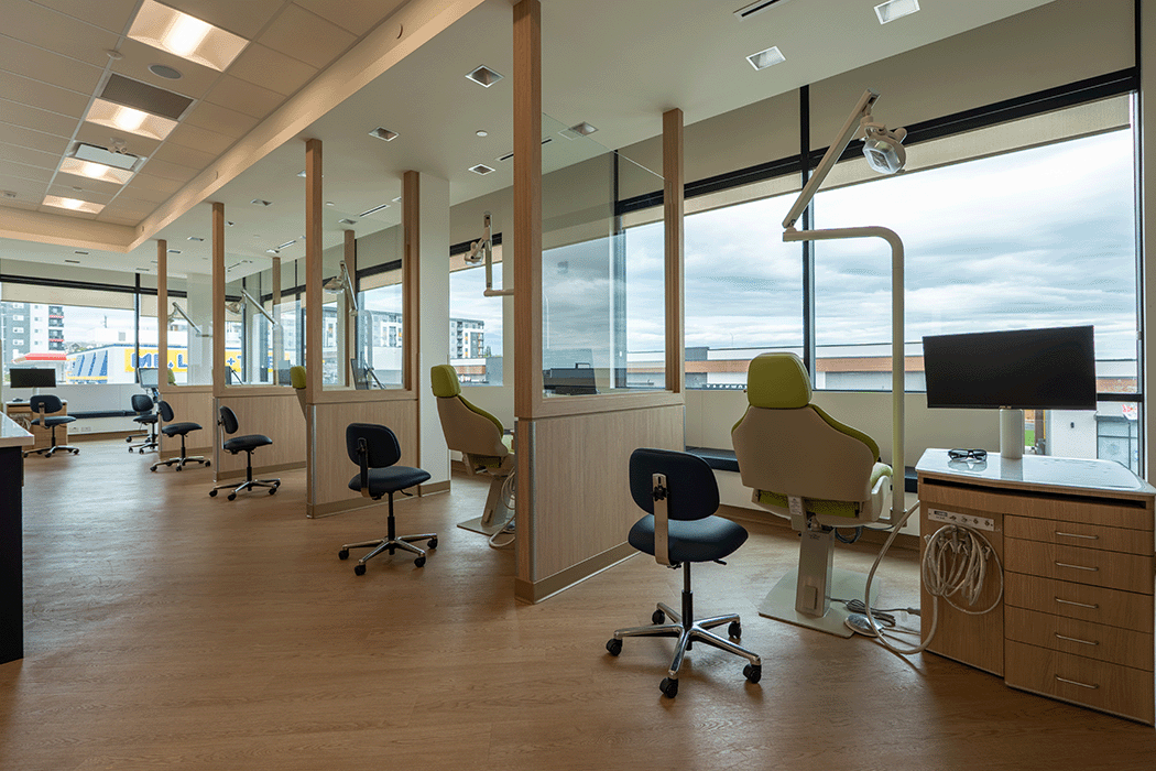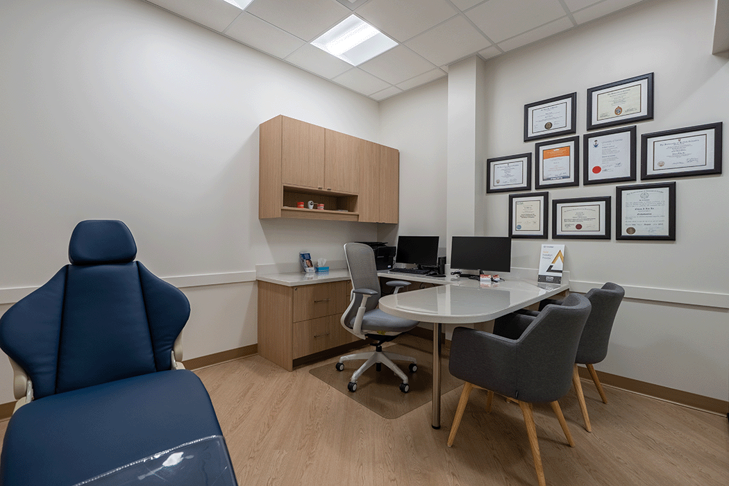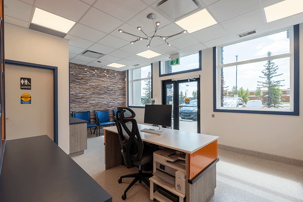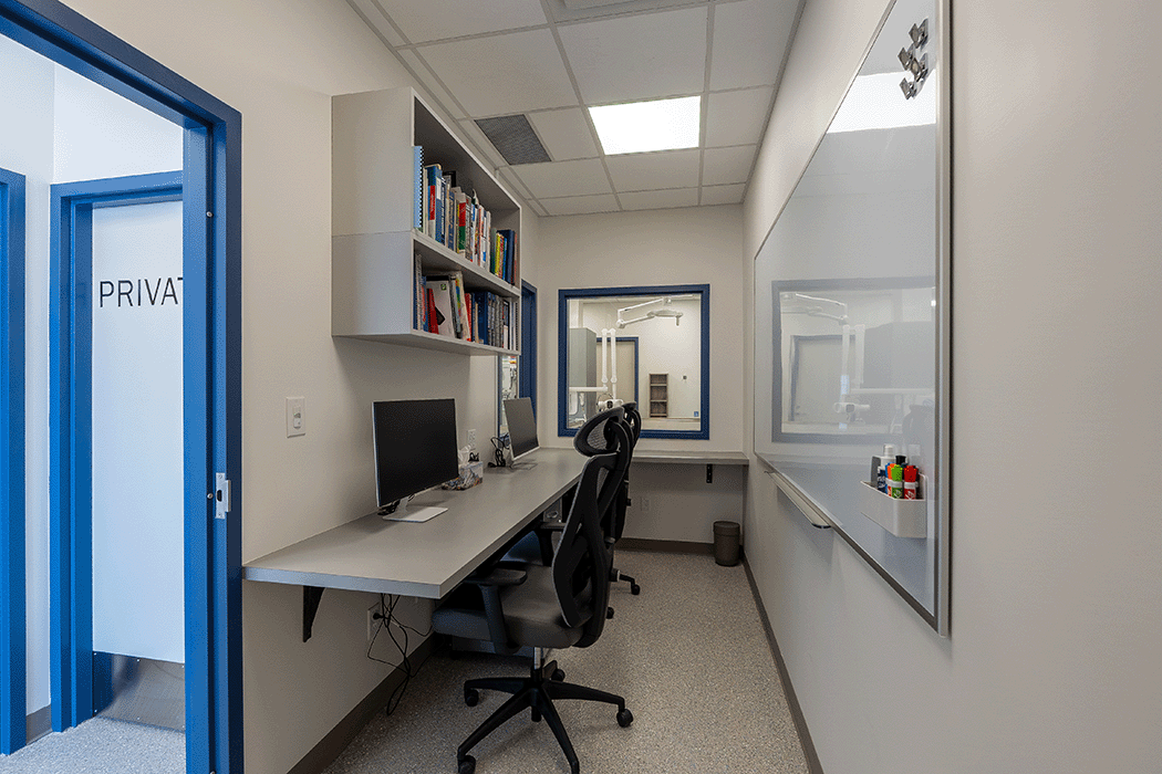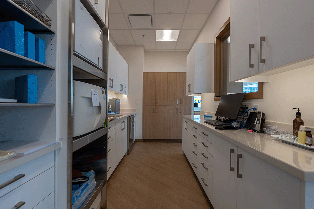 Interior renovations for a new orthodontics clinic, with all new finishes, millwork, solid surface countertops, Z32 testing, electrical, medical gas, mechanical, HVAC, plumbing.