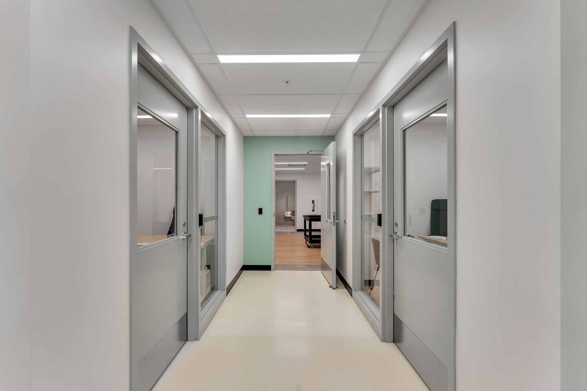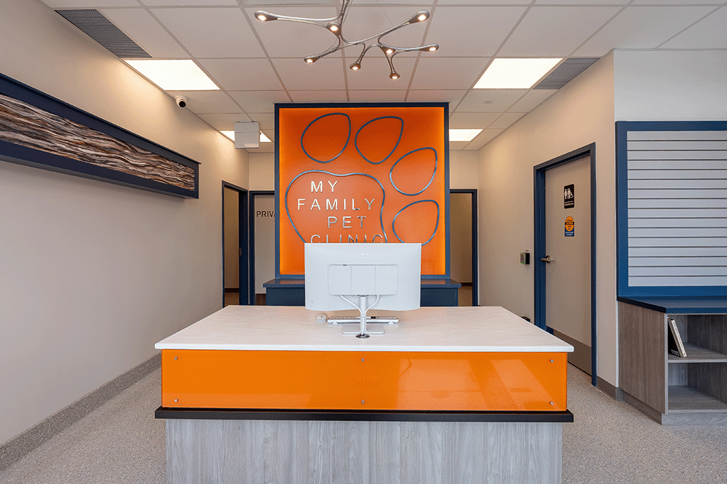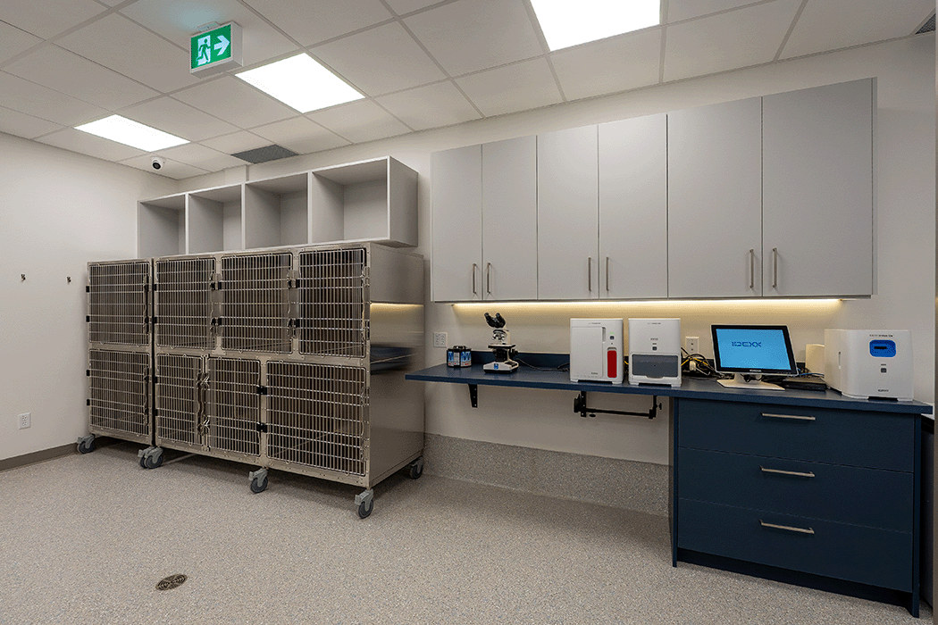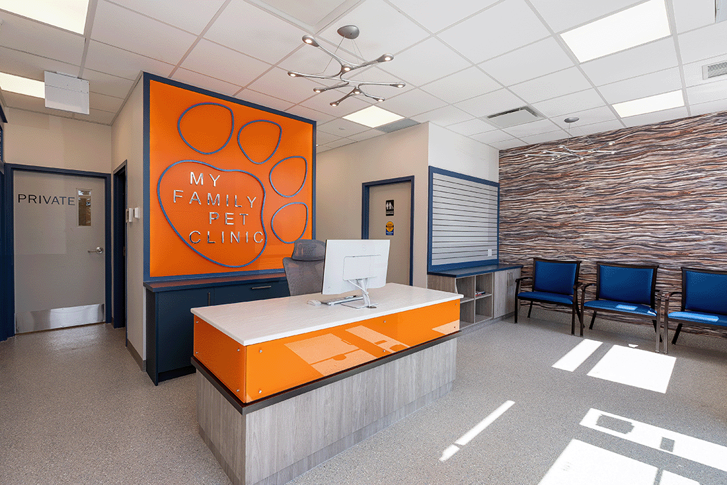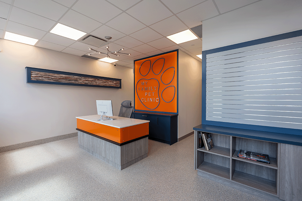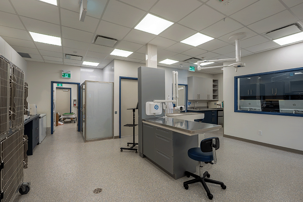 Full interior tenant improvement to support a new veterinary clinic with all new finishes, layout details, special equipment installation and clinic requirements.