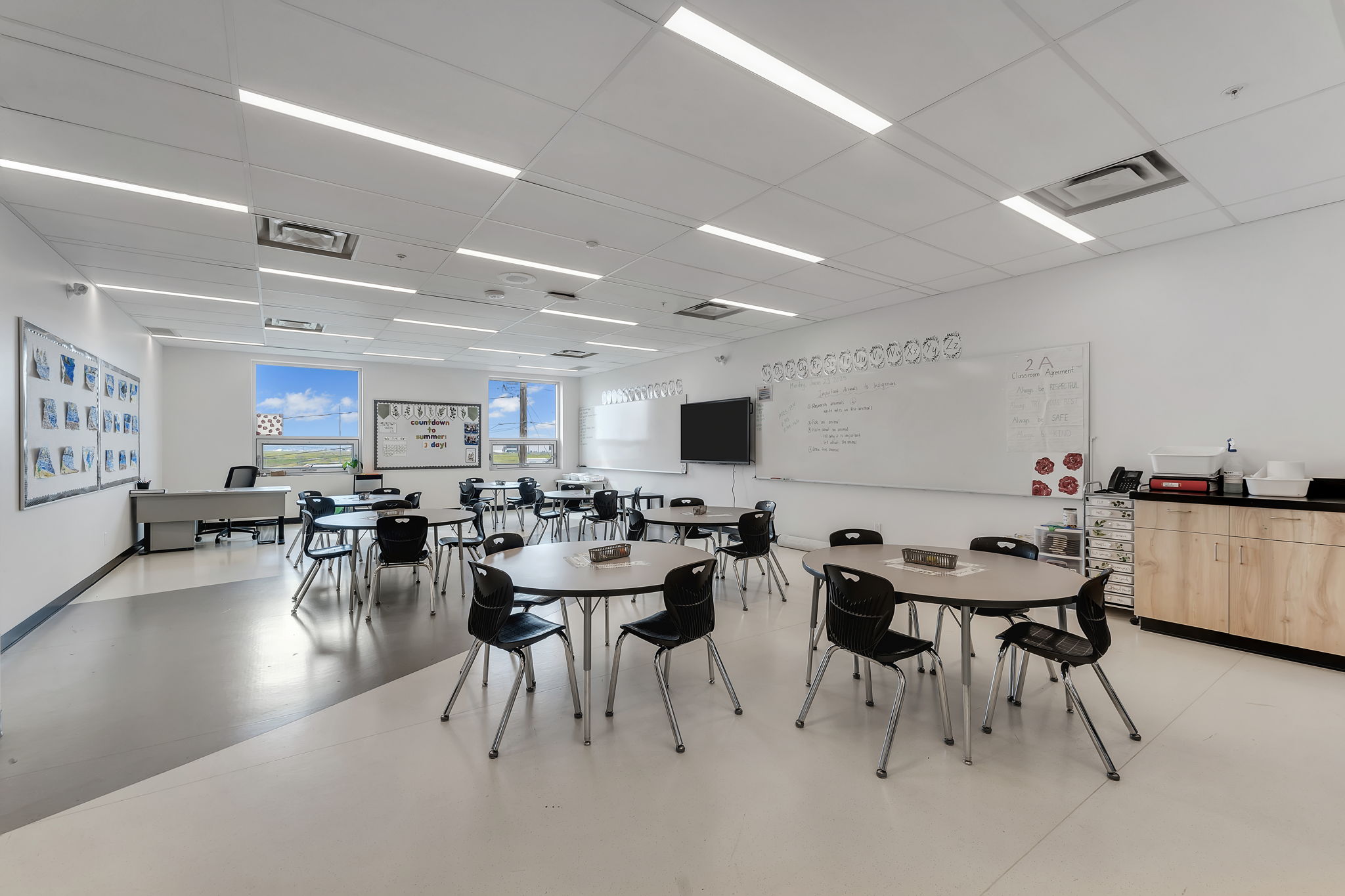 Ground up build of a new school and gymnasium, will all new interior and exterior finishes, new gymnasium facility, multiple classrooms, flex rooms, offices, washrooms, new elevator, exterior hardscape and landscape.